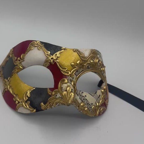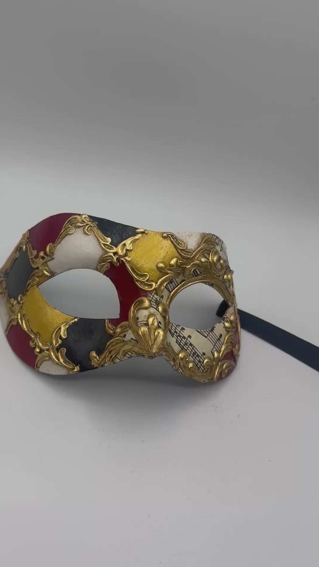 Verleihen Sie Ihrem Look einen Hauch von Geheimnis und Eleganz mit dieser atemberaubenden venezianischen Barockmaske in sattem Gelb, Rot und Gold. Mit aufwendigen goldenen Details und einem tiefbordeauxroten Grundton ist diese handgefertigte Augenmaske die perfekte Wahl für: