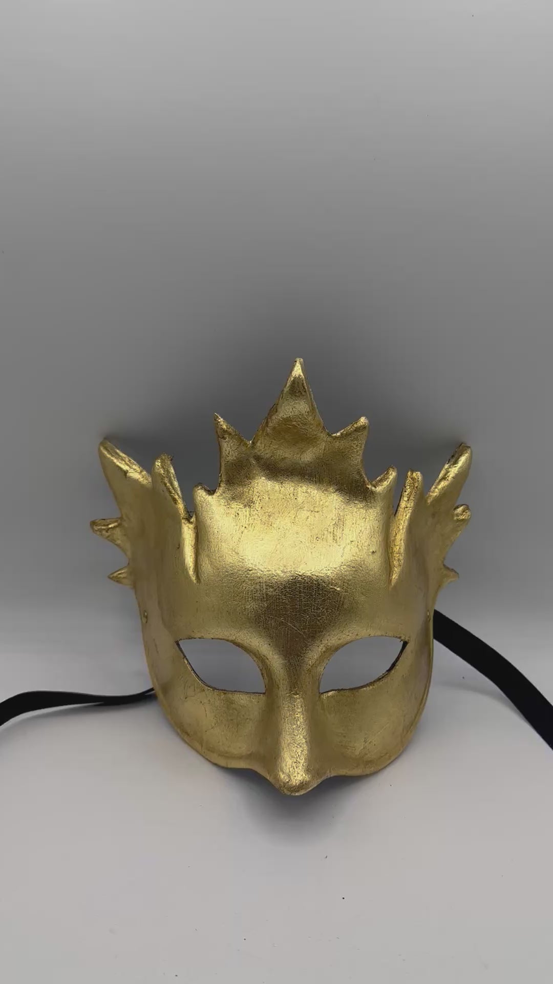 The Greek God of wine Bacchus stepped in for Dionysus who rewarded him with the title of ‘Party God’. Bacchus was associated with fertility and destroyer of morality; to this day, a drunken orgy is still called a bacchanalia. We have abstracted the mask of Bacchus with a simple gold leaf vine leaves and a taut face.It's obviously superfluous to say you're welcome at any party with this mask!