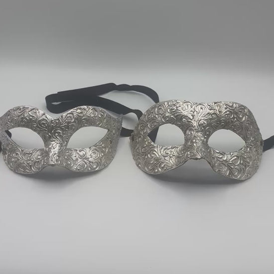 Couples Venetian Mask Set – Silver Baroque Masquerade Masks